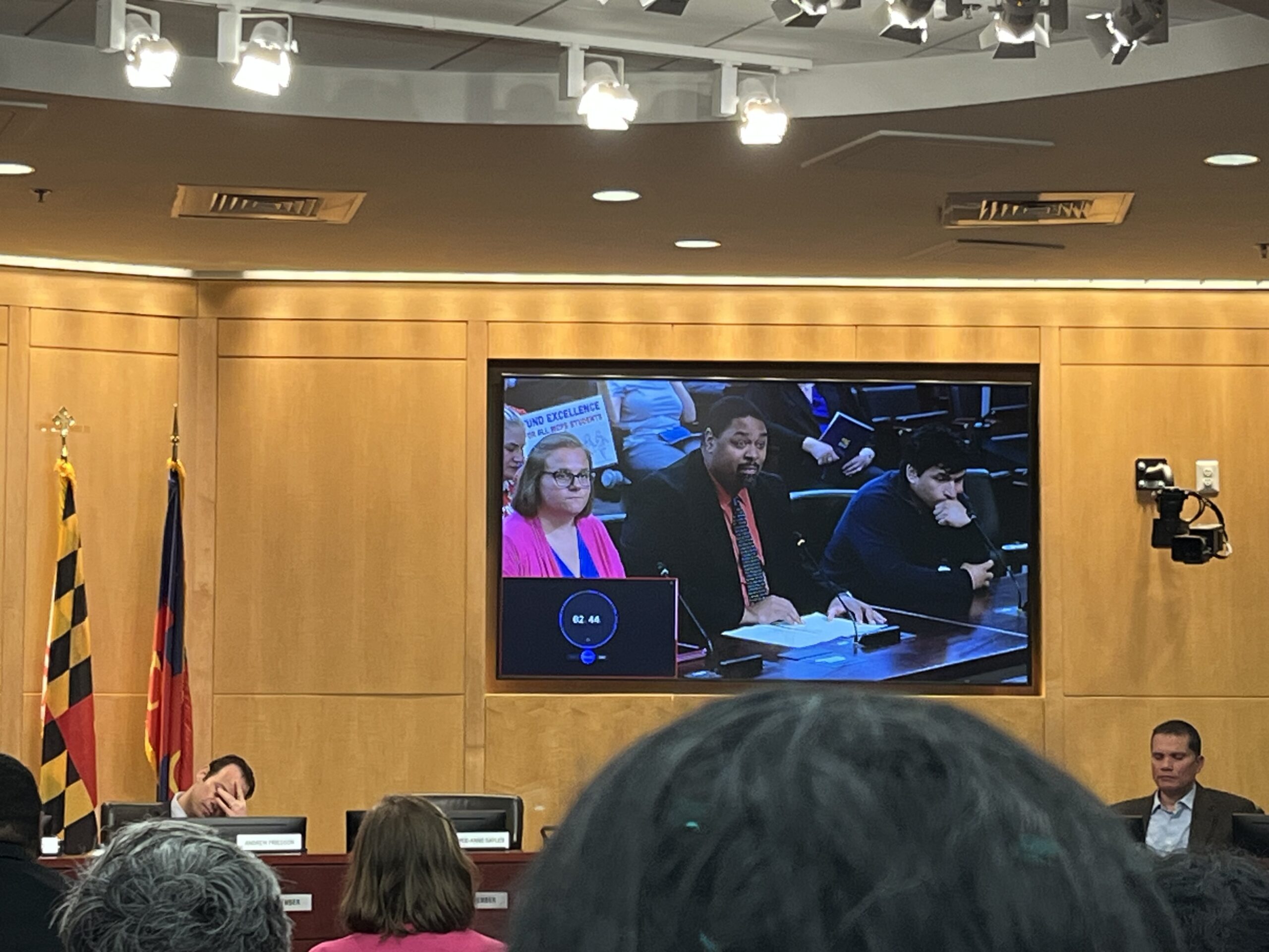 A coalition of pro-public education partners gathered for a press conference to call on the County Executive and County Council to fund the Board of Education's budget. Speakers included MCEA President Stein, BoE President Julie Yang, Superintendent Taylor, SEIU Local 500 President Pia Morrison, MCAAP President Christine Handy, and MCCPTA President Brigid Howe. Heidi Kakan, Northwest HS student and Minority Scholars Program member, joined as a special guest speaker.